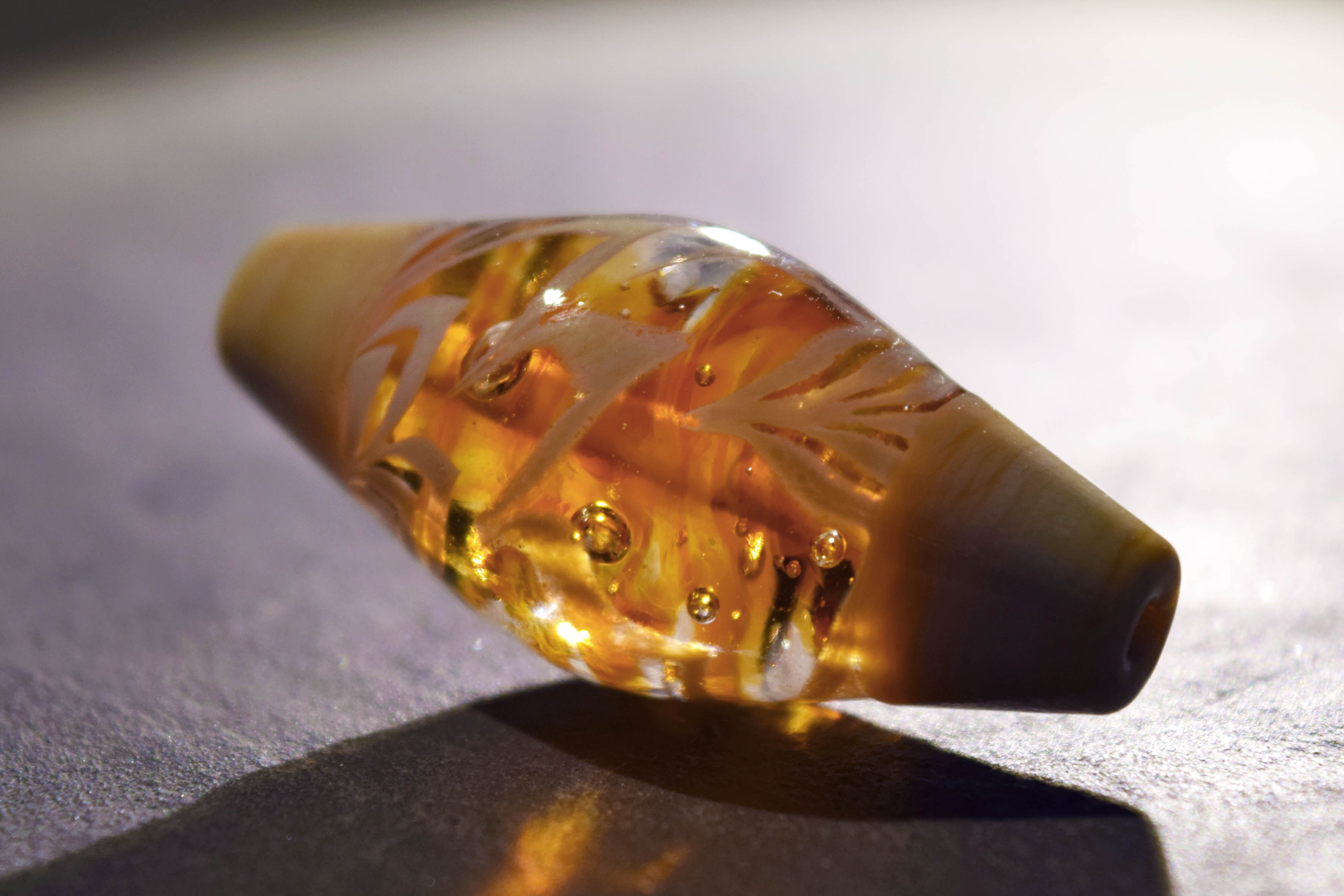 Perle ambre et ivoire en verre motif infusion Nathalie Crottaz 2016